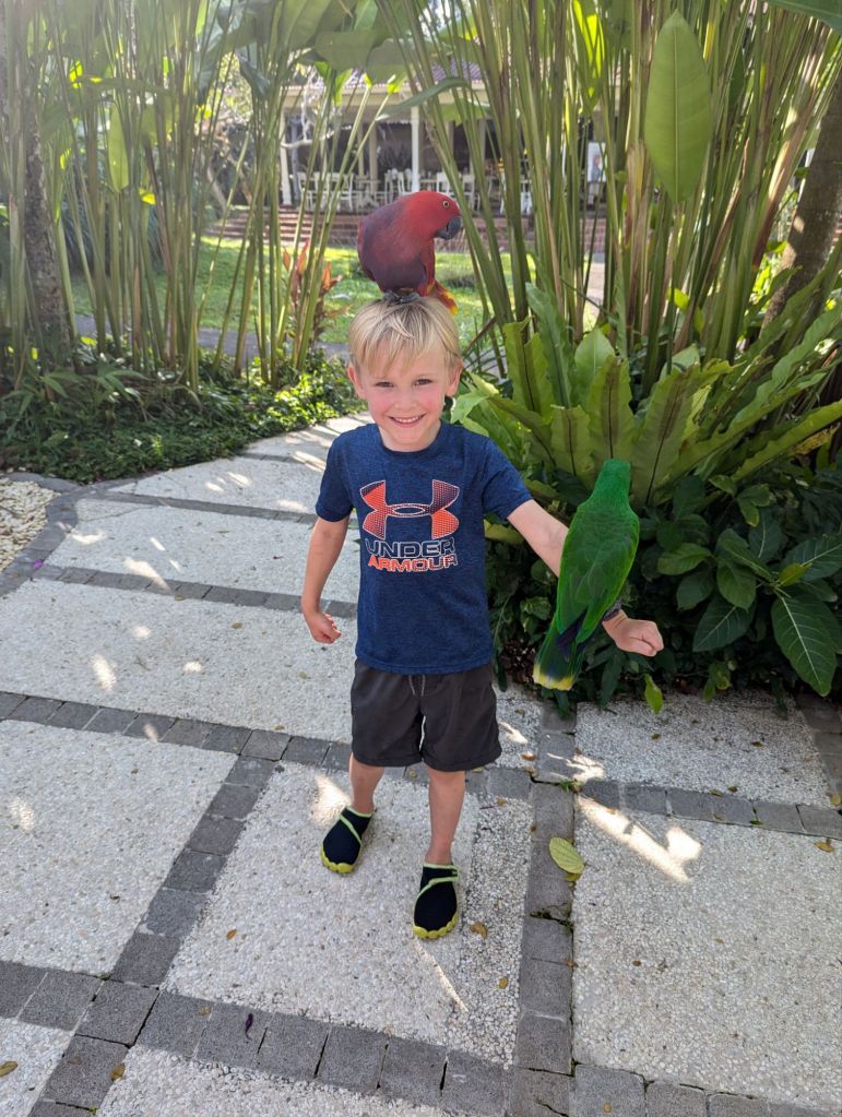 We went to a bird park and a reptile park. The bird park was more exciting and longer and had activities. The activities were like feeding the birds and bird shows and that was so fun.