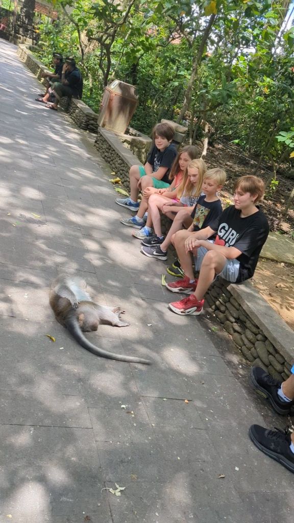 Bali is feeling really good. We went to a monkey forest and I was pretty scared. One guy got bit by a monkey. Roland even got bit a little bit. He didn’t bleed or anything, he was fine.