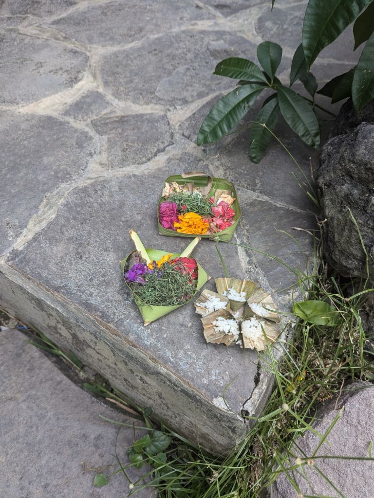 Before setting off on our journey, I noticed that most Americans have very little actual culture bringing them together. Well, let’s just say Bali delivered in that respect. Though the streets are filled with cars and thousands of scooters weaving in and out, the island still has an overwhelming feeling of serenity. Bali is known as the Island of the Gods due to the deep Hindu roots and the more than 20,000 temples that can be found on this small island. Every morning, homes, temples, and shops alike set out their offerings, known as canang sari, to thank the gods for all the good things in life and maintain a balance between the spiritual and mortal realm. They are usually made of woven palm leaves and contain things like rice, flowers, candy, and lit incense.