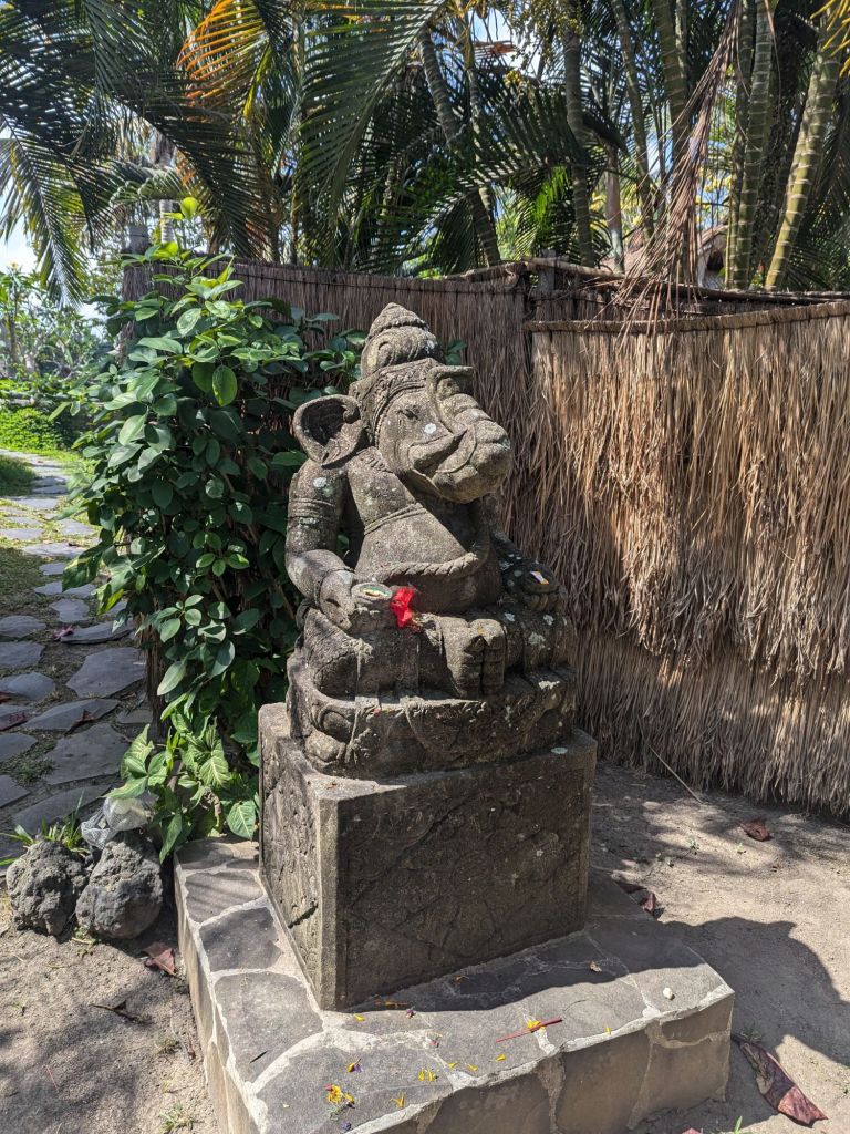Our villa has several shrines built in honor of the Hindu gods. The coolest thing about the particular villa that I chose to rent was that the guardian at the front is the elephant god Ganesha, the remover of obstacles. I did not know that until we arrived. I felt like it was some kind of sign that we were right where we were supposed to be to begin our worldschooling journey.