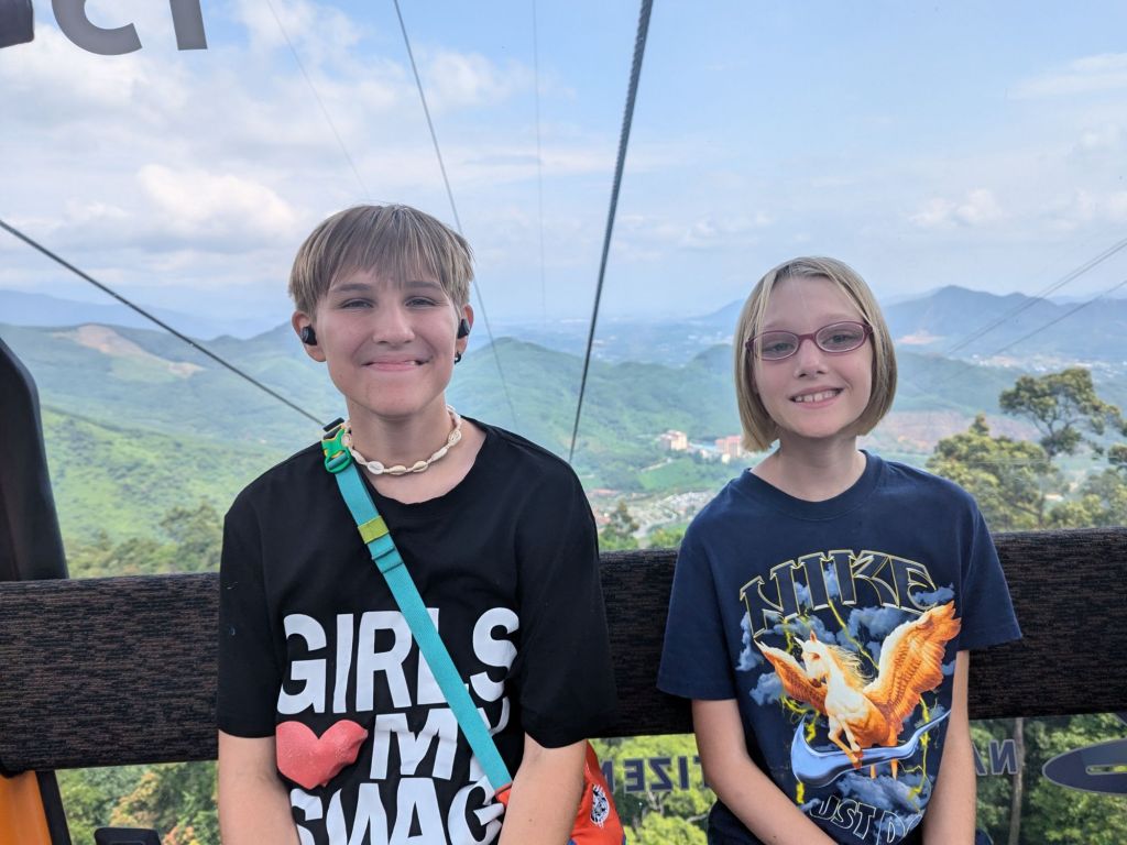 Ba Na Hills was a weird and crazy place. The gondola that took us there was small. It was sunny at first, but then got very misty and foggy. It was mysterious. It was very high up, so we were just in the clouds. We saw a Spanish dance performance. We ate lunch at a huge buffet. My favorite thing was the guava strawberry tea. We went on a mountain coaster. You control how fast or slow you go with a brake. I went fast until the turns and then I slowed down.