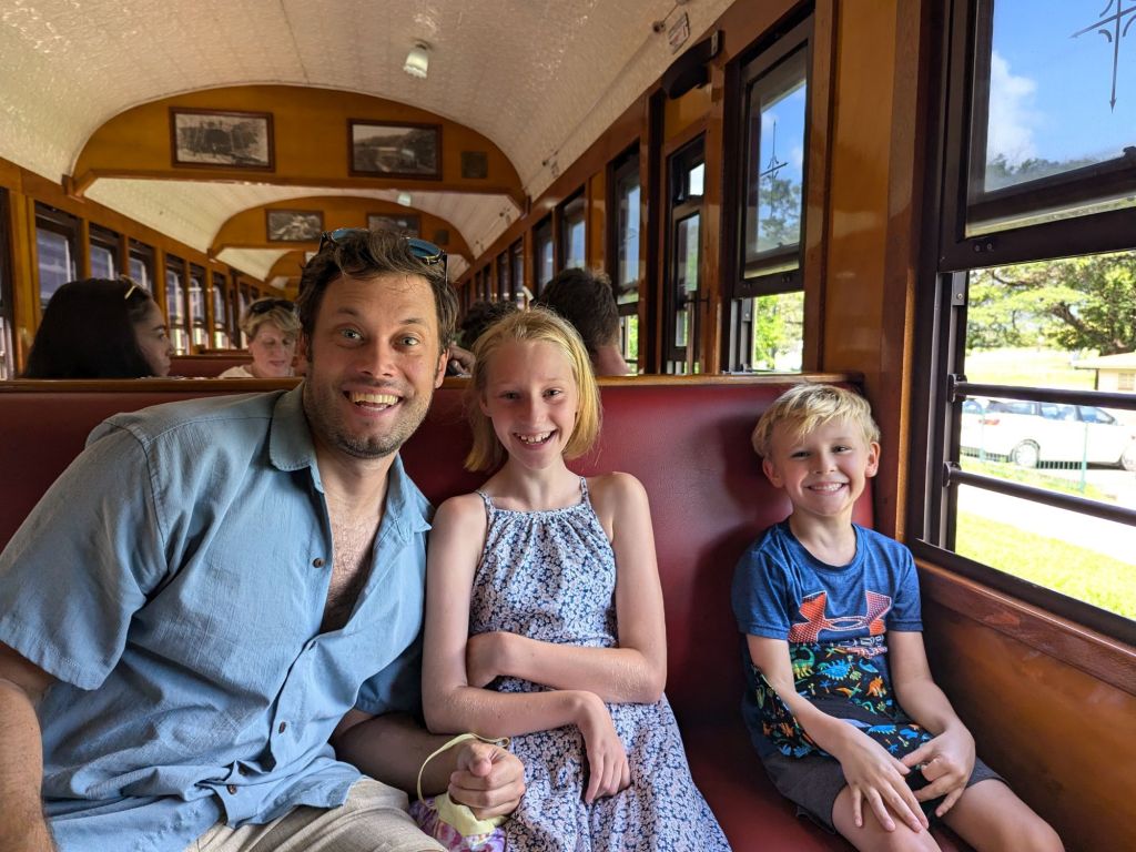 Jack’s Christmas present was to go on a train ride. We saw some waterfalls at one stop. The train went through many tunnels and it was completely black in them. Even though it was hot, I would like to travel by train more. At the end of the train ride, we looked around at some shops and went to a bird place. Some of the birds could even talk. Then, we took a gondola all the way back to the bottom. I got a little koala keychain at the gift shop.